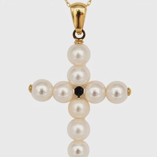 A delicate expression of faith, elegance, and quality — this 18K gold cultured pearl cross necklace is designed to be cherished for years to come.